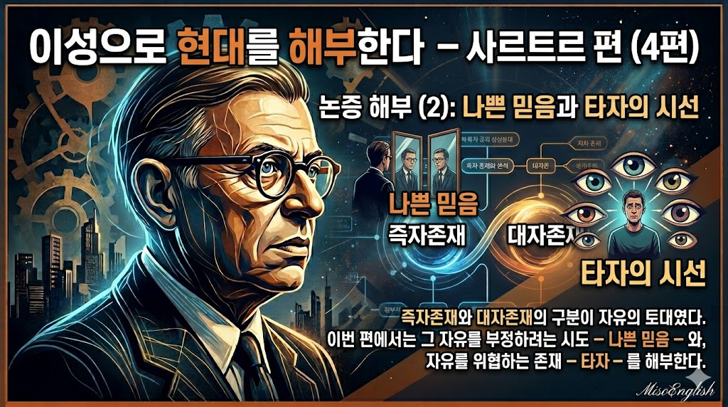 즉자존재와 대자존재의 구분이 자유의 토대였다. 이번 편에서는 그 자유를 부정하려는 시도 — 나쁜 믿음 — 와, 자유를 위협하는 존재 — 타자 — 를 해부한다.
