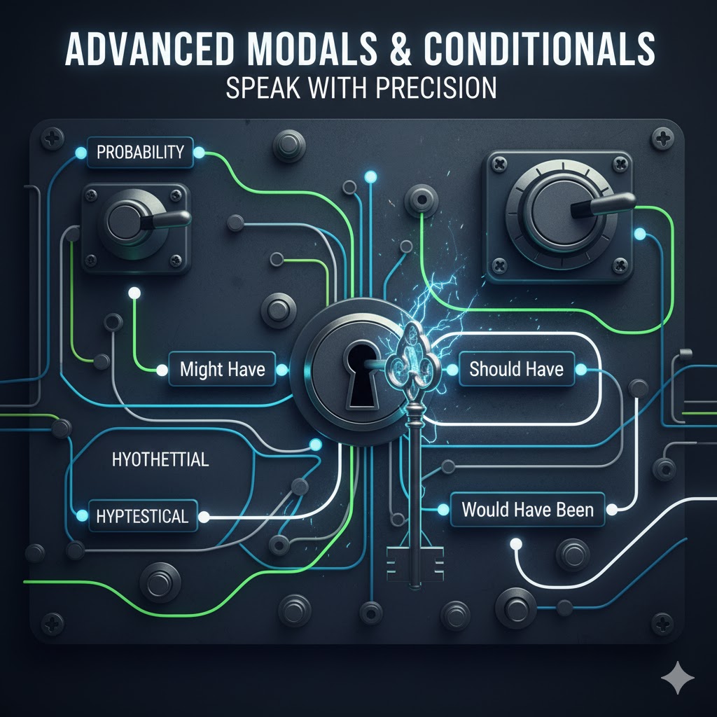 At the C1/C2 level, correct grammar is assumed—but precise grammar is the goal. Modals (like would, might, should) and Conditionals are the tools we use to navigate the complex nuances of reality, possibility, and regret.