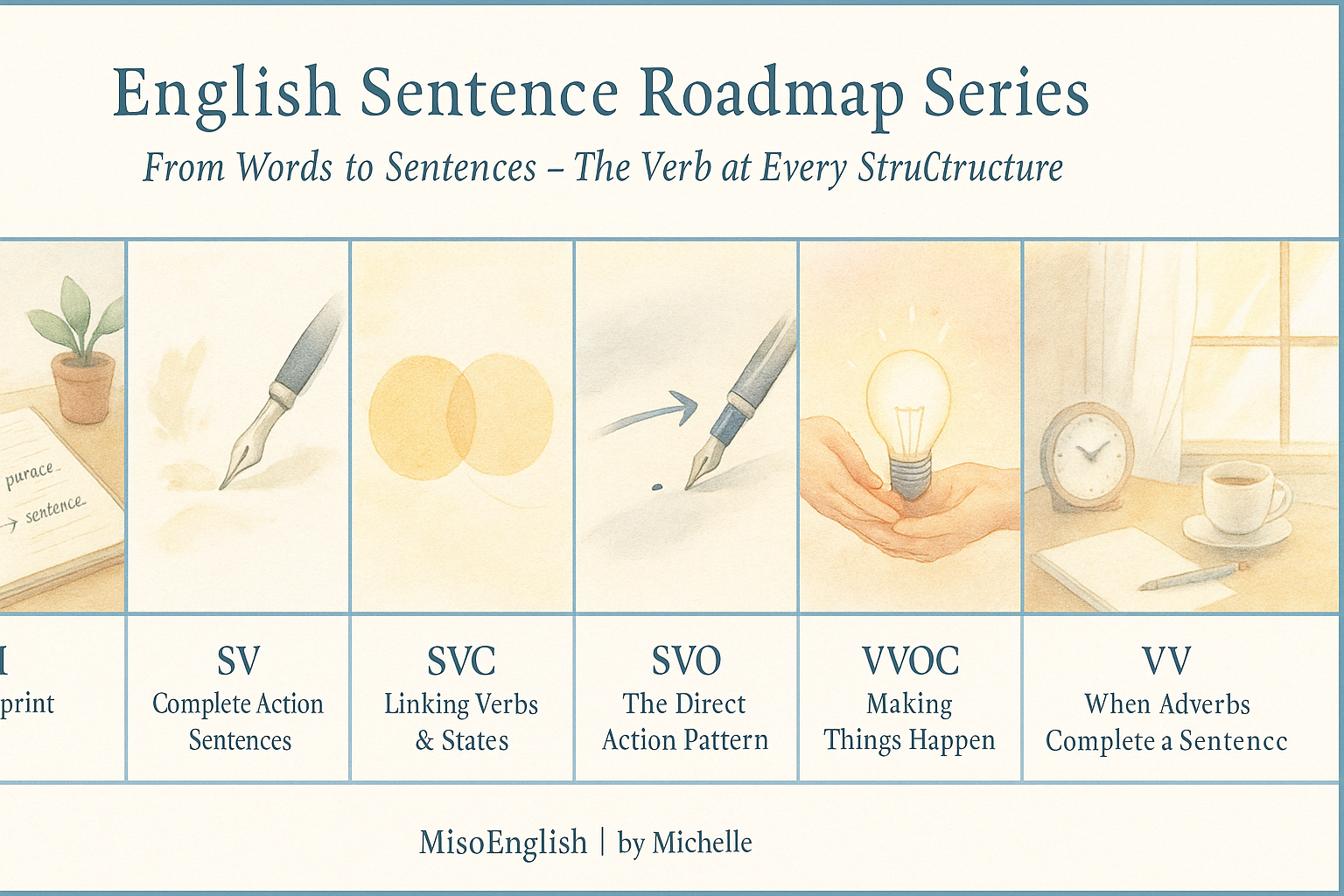 By following it step by step, you’ll discover how every phrase, clause, and pattern grows naturally from its verb.