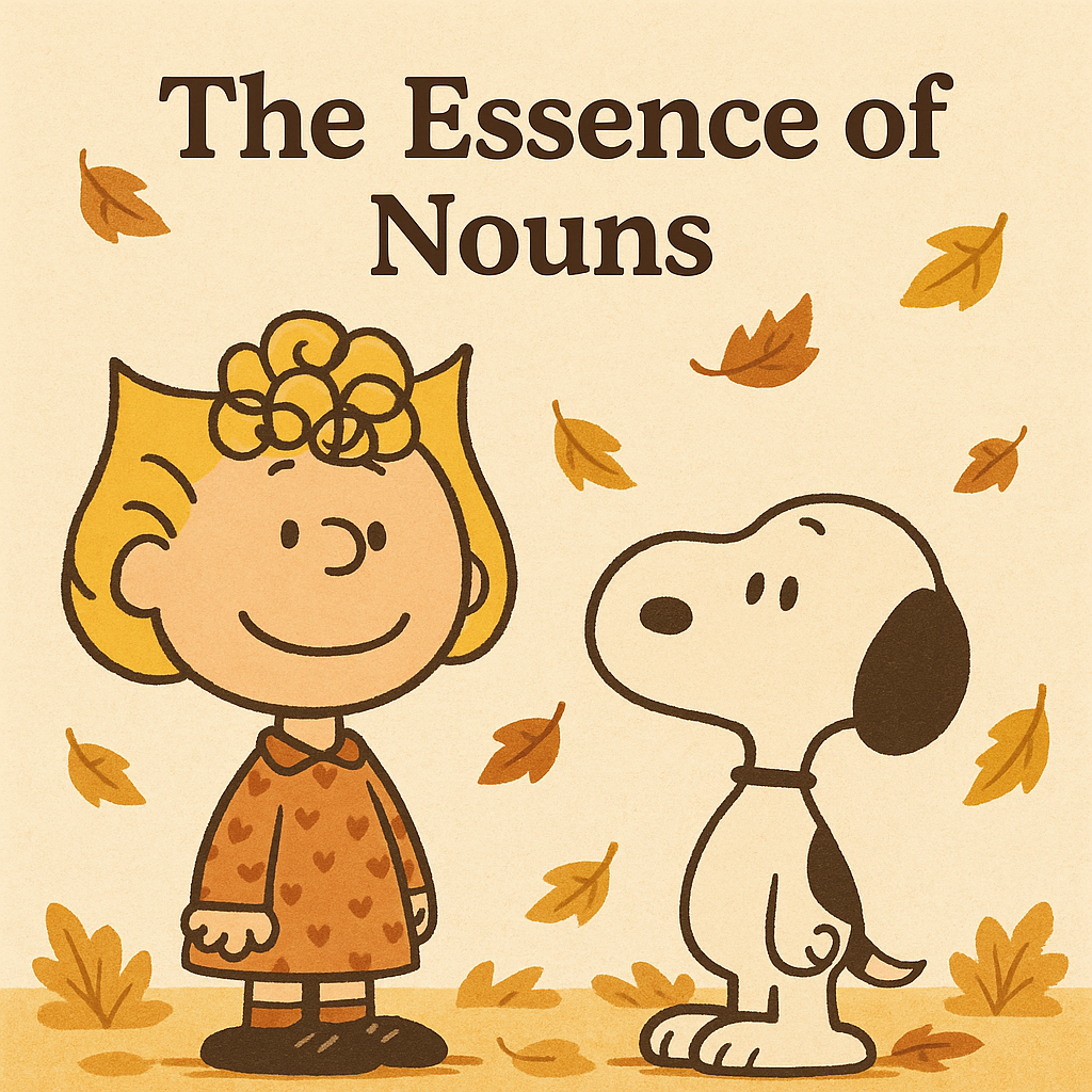 이런 단어들은 손으로 만질 수 없지만 우리는 그것을 하나의 존재처럼 말하죠. 이게 바로 명사의 본질이에요 — 세상을 마음속에 저장할 수 있게 만드는 언어의 도구.