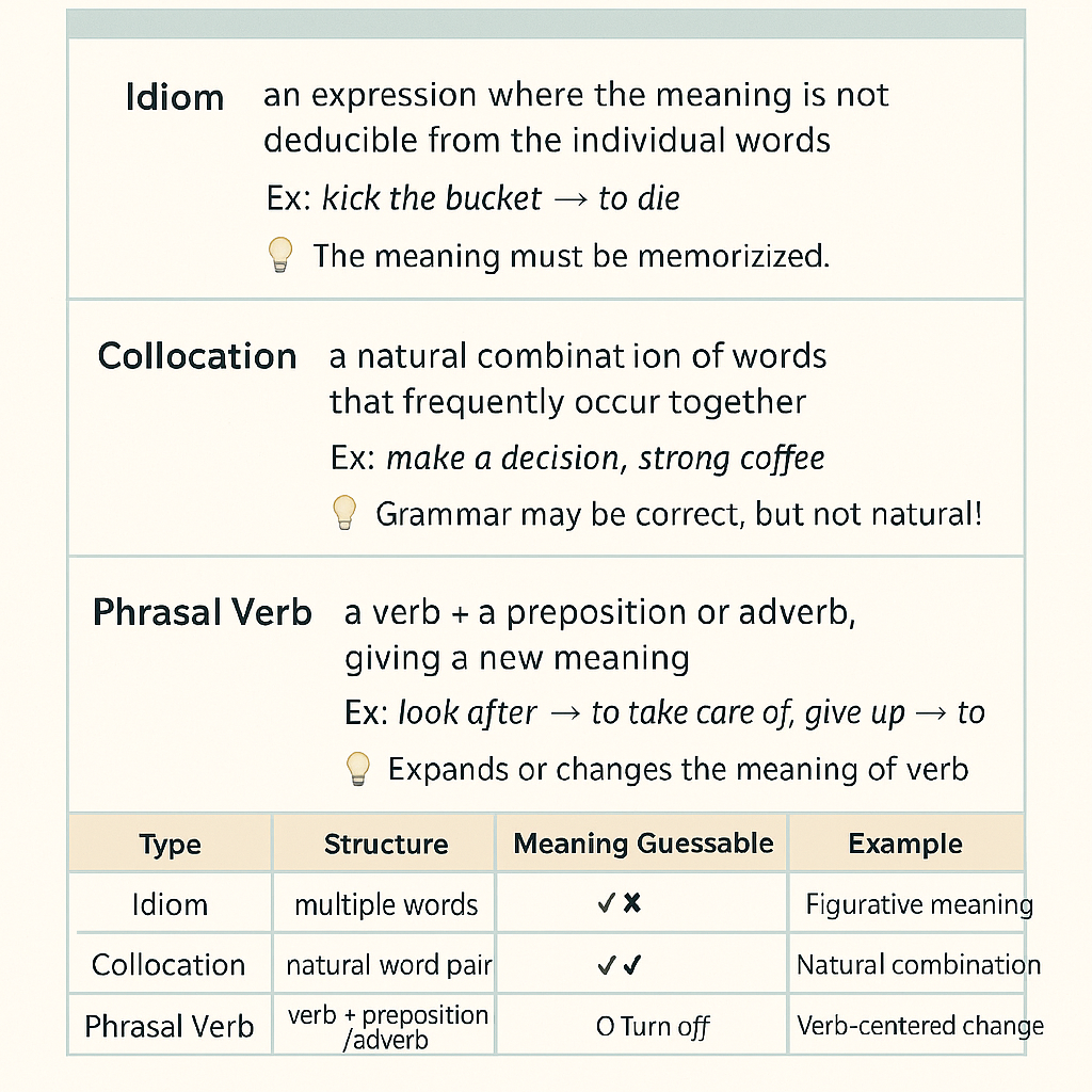 Idiom, Collocation, Phrasal Verb — 헷갈리는 세 표현의 차이 본문