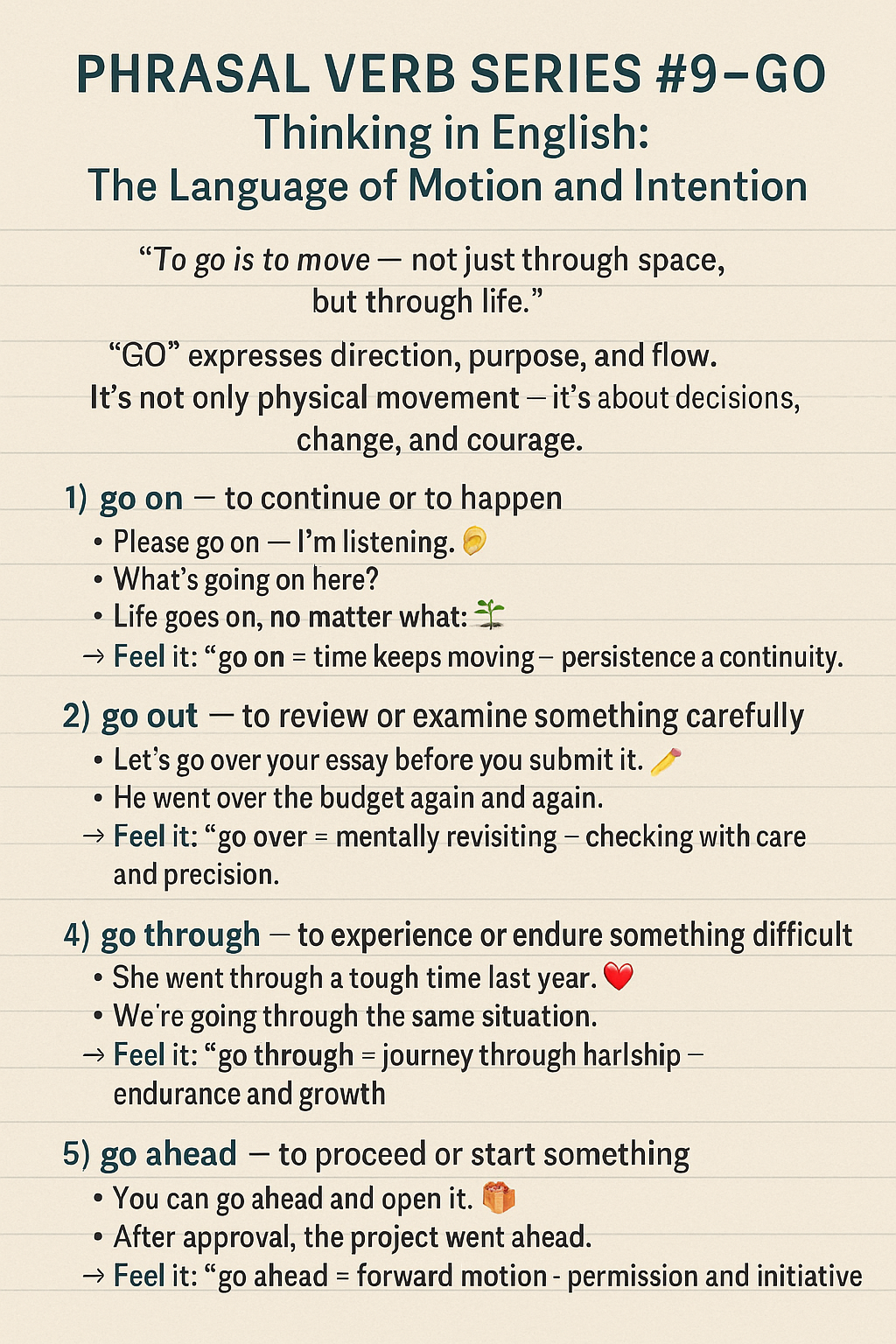 👉 Feel it: “go over” = mentally revisiting — checking with care and precision.