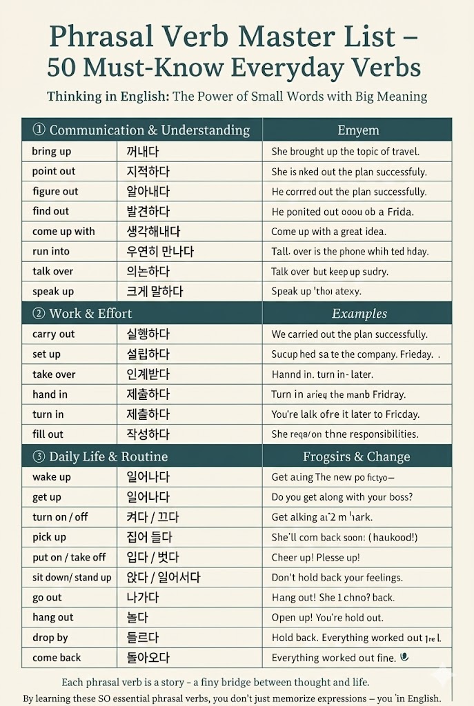 📘 Phrasal Verb Master List – 50 Must-Know Everyday Verbs