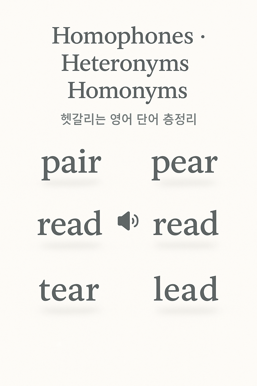 KR: 철자는 같지만, 발음과 뜻이 다른 단어. - Homonyms (동형이의어)