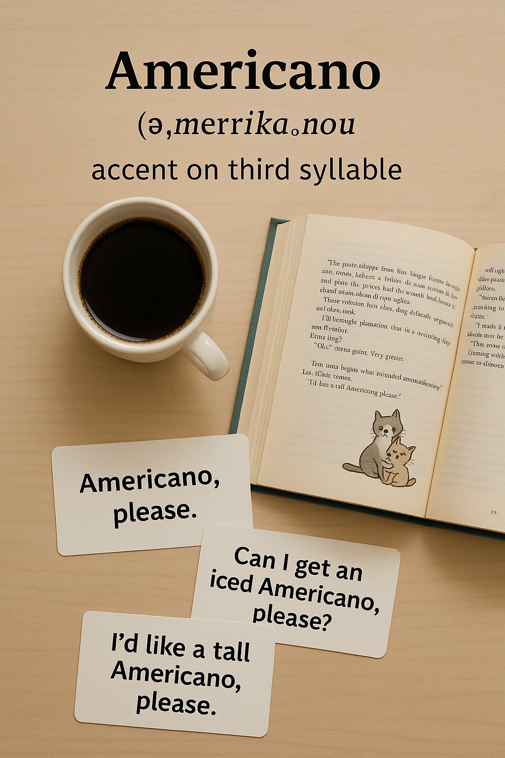 그 순간, 나는 깨달았다. 나는 한국식으로 ‘아-메리카노’, 즉 첫 음절에 강세를 두고 말해왔던 것이다. 하지만 영어에서는 세 번째 음절 ‘KAH’에 강세가 있다.