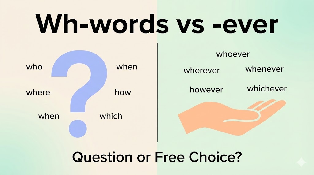EN: Wh-words ask a question. -ever words choose freely or mean “no matter …”.