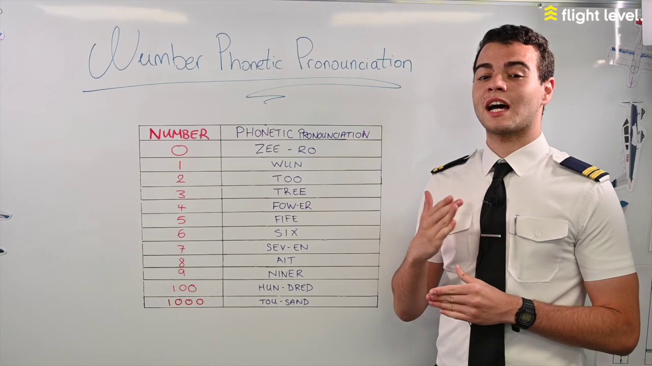 EN: Some numbers are pronounced differently to reduce confusion (e.g., 3 = tree, 5 = fife, 9 = niner).
