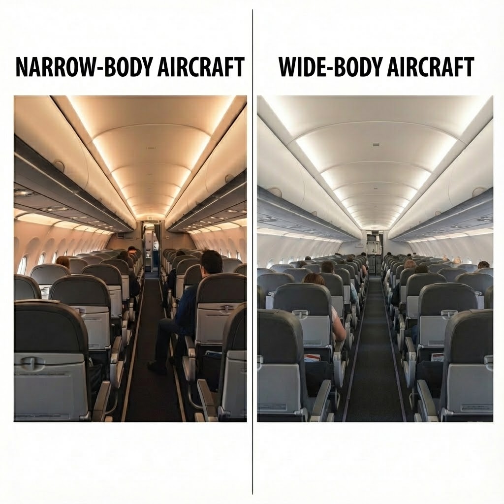 (해설) 말 그대로 몸통이 좁은 비행기입니다. 복도가 1개뿐입니다. 주로 국내선이나 일본, 중국 등 단거리 노선에 투입됩니다. (예: B737, A320)