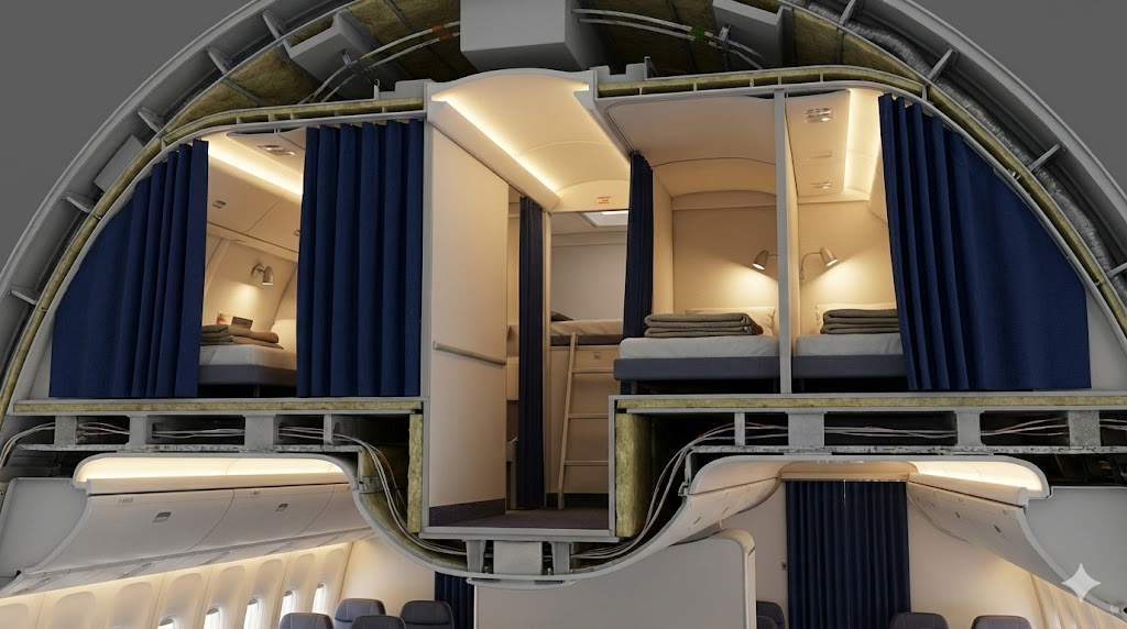 - Facilities: Although tight, it features flat beds where crew can stretch their legs, curtains for privacy, individual reading lights, and an interphone to contact the cockpit in case of emergencies.