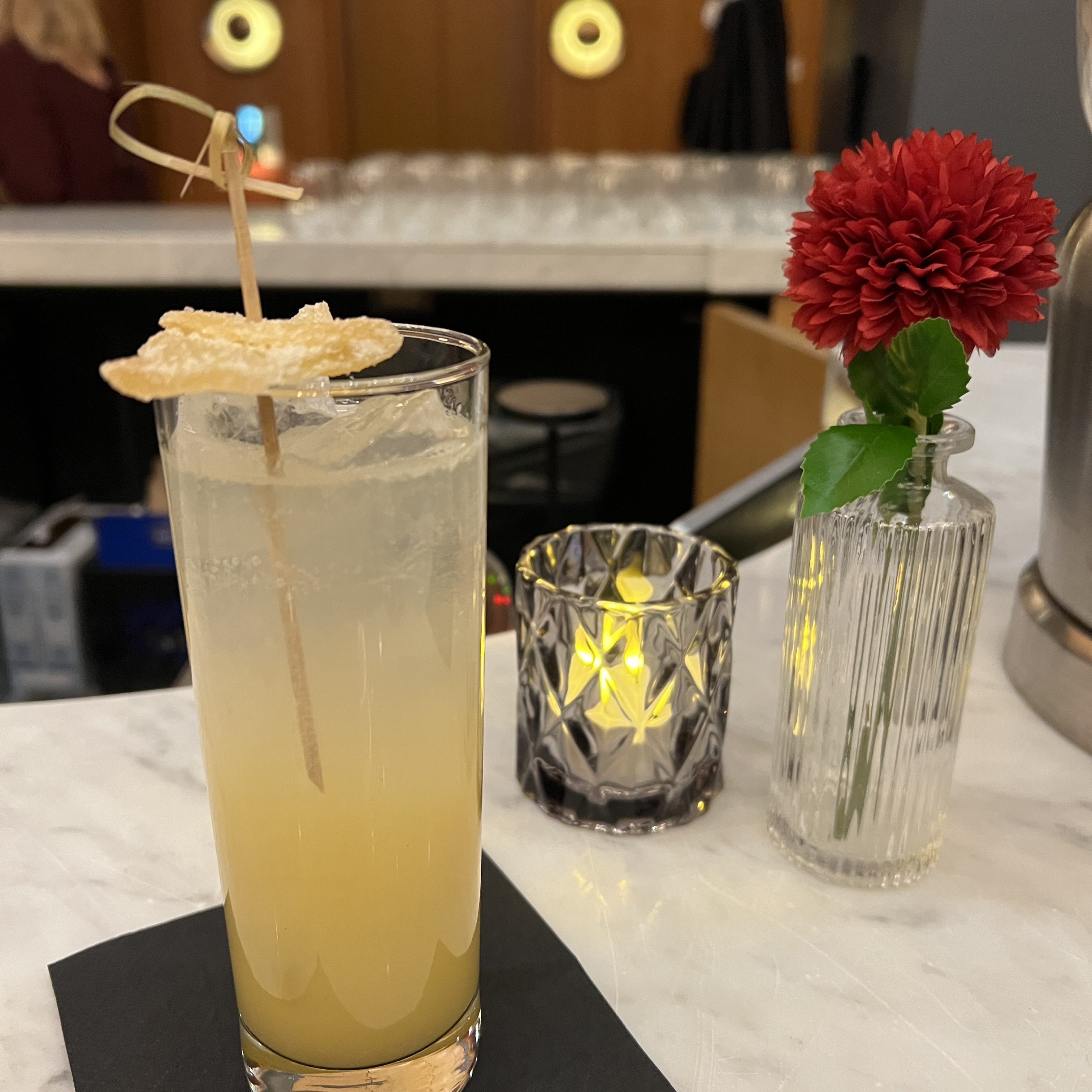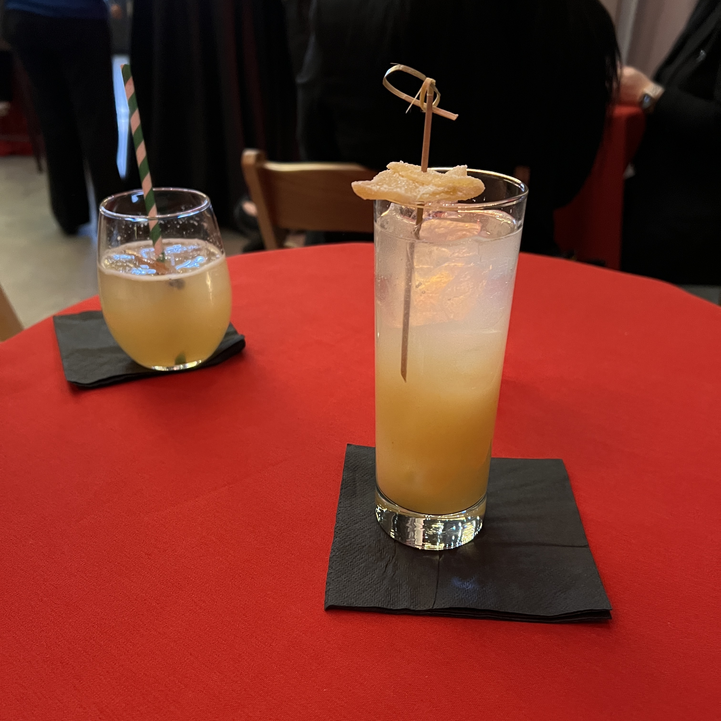 I had a ginger–pear mocktail with candied ginger on top — light, fruity, and slightly spicy.