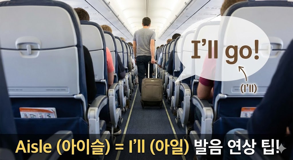 - Aisle (명사): 문장에서 중요한 정보를 담고 있는 '명사'이기 때문에, 아무리 빨라도 [아일] 발음을 또렷하게 유지하는 편입니다.